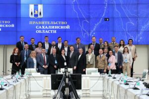 В рамках рабочего визита делегация вузов-партнеров ПАО «Газпром» посетила объекты Сахалинского государственного университета, включая строящиеся объекты кампуса мирового уровня. Экскурсию проводил и.о. ректора СахГУ Алексей Огнев, детально останавливаясь на ключевых направлениях развития университета. Особое внимание было уделено опыту СахГУ по вопросам подготовки кадров для газовой отрасли страны на Дальнем Востоке. Делегаты также ознакомились с презентацией на тему «Система управления регионом», которую провел Министр цифрового и технологического развития Сахалинской области Александр Снегирев.