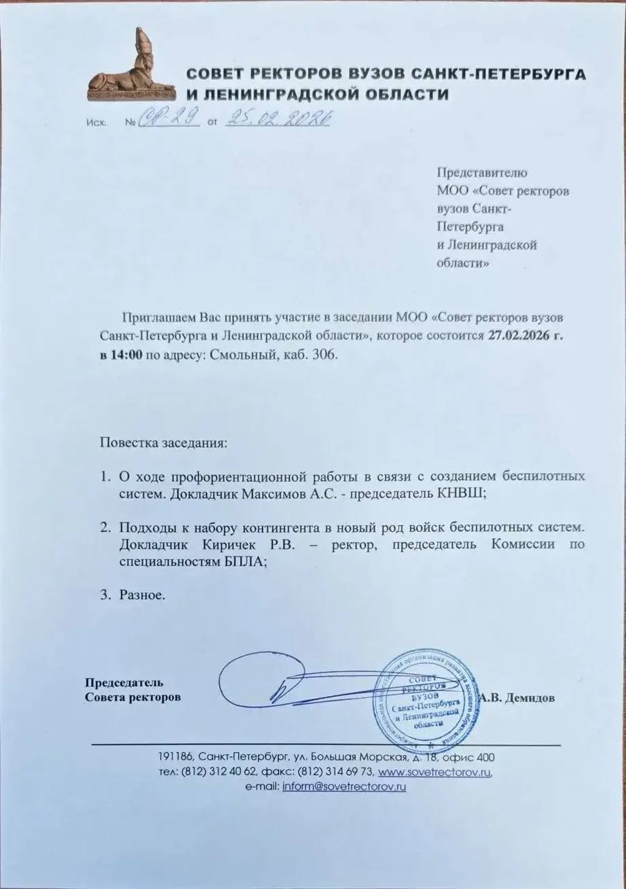 Новости Приглашаем на собрание Совета ректоров в Смольном 27.02 25.02.202625.02.2026 Oleg Lazo Просмотров: 23